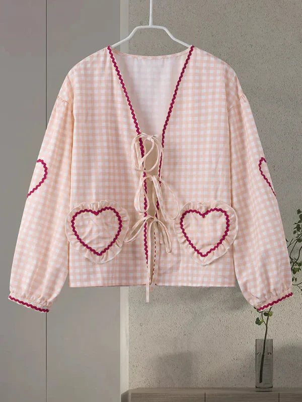 The Lunessa Charming Heart Blouse brings a touch of whimsy to classic elegance. Designed with delicate heart-inspired accents and a flattering silhouette, this blouse radiates feminine charm while maintaining a refined, polished look. Whether styled for a romantic date, a casual outing, or a chic workday ensemble, this piece adds a sweet yet sophisticated touch to any wardrobe.